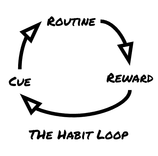 The mind being pretty good at adapting - even if we don’t actually like change all that much - connects this cue directly to this reward when the routine has been practiced enough to be practically unconscious.